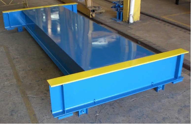 Fabricada com uso de perfis estruturais laminados com tensão de escoamento de 345 Mpa e chapa de rolamento que serve de pista de rodagem, a plataforma de pesagem é uma estrutura rígida dimensionada para pesagem de eixos com até 15t de carga. A estrutura é apoiada em 04 células de carga e possui um conjunto de batentes para limitação de oscilação.